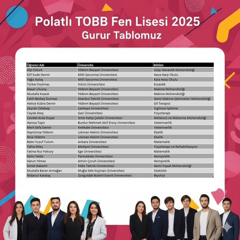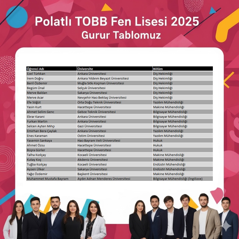 polatlı tobb fen lisesi 2025 gurur tablomuz